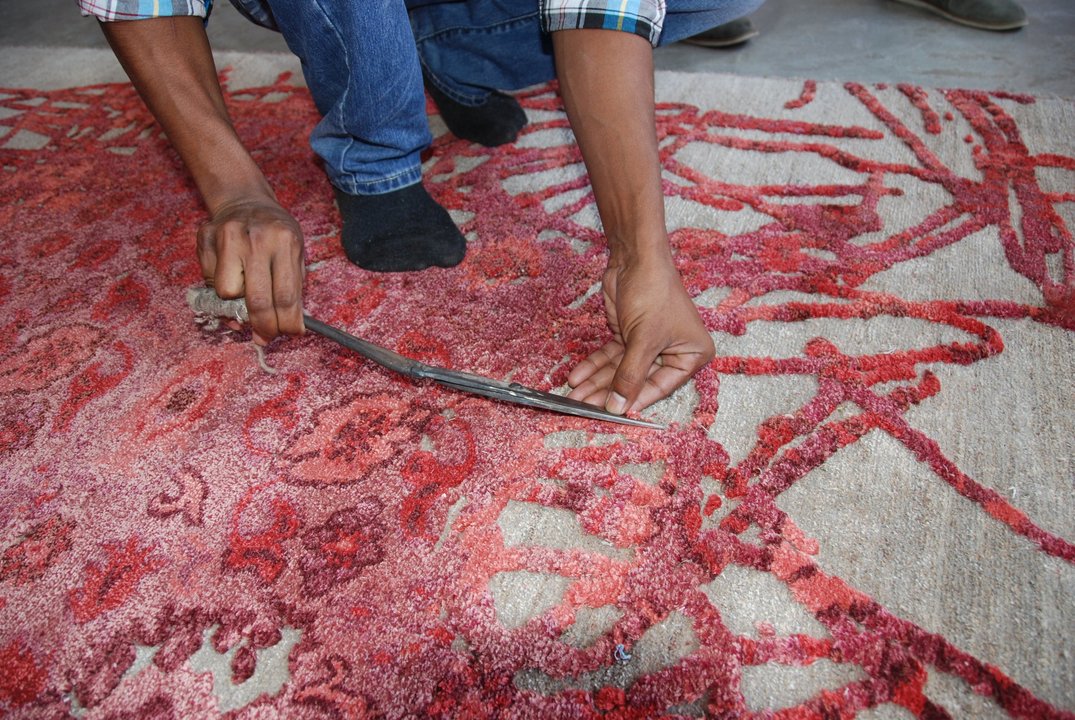 Viele Arbeitsschritte sind erforderlich, damit aus einem Design-Entwurf ein handgefertigter Teppich entsteht. Dabei sind gründliches Arbeiten, Erfahrung und Handwerkskunst unabdingbar. Denn nicht nur die Technik, die die Knüpferinnen und Knüpfer anwenden, hat einen Einfluss auf die Textur, Beschaffenheit und Qualität des entstehenden Teppichs. Auch andere Arbeiten, wie die Materialauswahl sowie das Färben, Scheren, Waschen und die Feinarbeiten zum Abschluss, sind wesentlich dafür.